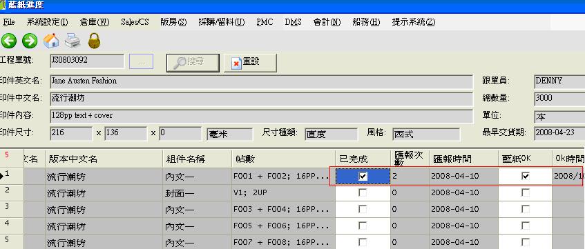 客戶確認藍紙後, 客服員到 Sales/CS à 藍紙進度, 打勾 “已完成” (已出藍紙時打勾) 及 “藍紙OK” (客確認藍紙時打勾) 以作記錄